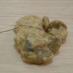 不知道誰吐啦!!!假裝是摩摩好了!!!他最常被我看到吐這種的。不過這次毛就有比較多,不像以前那麼稀。