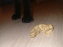 渣渣吐未消化飼料。吞後沒多久尖叫一聲就吐出來。還很搞笑地想毀屍滅跡.......